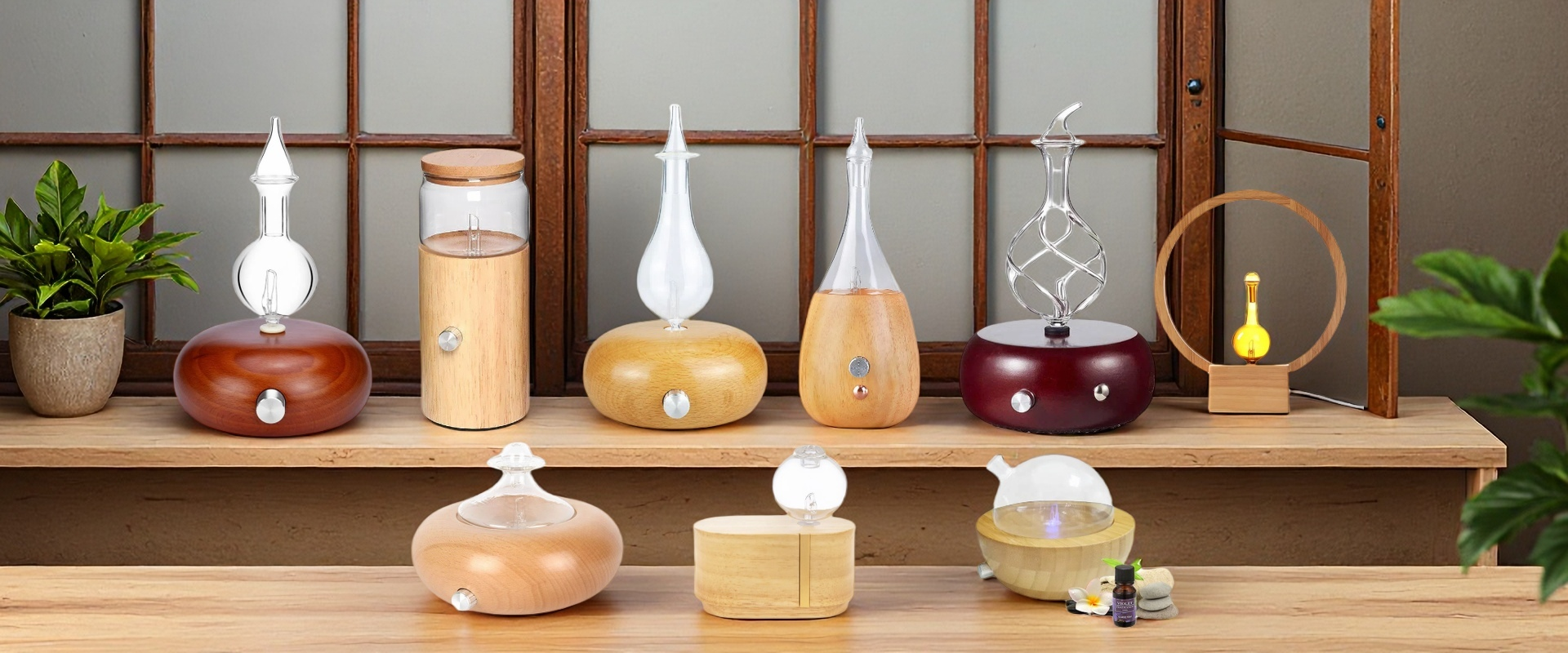 Wood Base Glass Essential Oil Nebulizer Diffuser Waterless Aromatherapy Gift Box